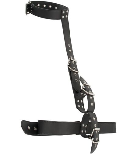 Hochwertiges Fessel-Set mit Hals- und Handfesseln sowie Taillenriemen. Komplett verstellbar mit Schnallenverschlüssen. Stilecht in edler Leder-Optik, aber zu 100% vegan. Ein echtes Highlight für Rollenspiele und Bondage-Fantasien. Halsfessel-Umfang 28 cm bis 42 cm. Handfessel-Umfang 18 cm bis 26 cm. Taillenriemen-Umfang 62 cm bis 102 cm. Rückenriemen-Länge 17 cm bis 32 cm. Polyurethan. ...
