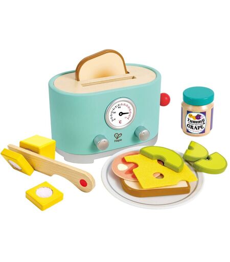 Mit dem Toaster-Set Pop-up Kling von Hape können Kids ab zwei Jahren das Geschehen am Frühstückstisch nachstellen. Toaster-Set Pop-up Kling von Hape inkl. Teller, Toast, Butter, Schinken, Käse, Avocado, Marmelade, Messer beweglicher Hebel, tickende Zeitschaltuhr, Pop-up-Effekt, Klingel-Sound aus Holz Batterien, 2x AAA nicht im Lieferumfang enthalten ab 2 Jahren geeignet Der aus Holz gefertigte, batteriebetriebene Toaster von Hape bietet den Kids unterhaltsamen Spielspaß. Die Kleinen können die Toastscheiben wie bei einem echten Küchengerät herunterdrücken und so die tickende Zeitschaltuhr aktivieren. Nach sechs Sekunden ertönt ein Klingel-Sound und die Brotscheiben springen hoch. Jetzt geht es ans Belegen: Zum Lieferumfang des Spielsets gehören ein Teller und ein Messer, zerteilbare Butter, Käse, Schinken, Avocados und Marmelade. Die umfangreichen Extras gestalten die fantasievollen Rollenspiele der Kleinen besonders realistisch. ...