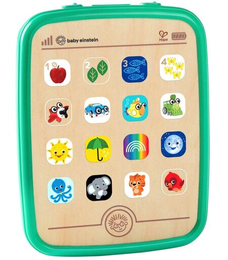 Das Baby Lerntablet von Hape bietet Kindern jede Menge Spaß. Ganz nebenbei unterstützt es den Nachwuchs dabei, Grundbegriffe der deutschen, italienischen und englischen Sprache zu erlernen. Baby Lerntablet der Linie baby einstein von Hape über 150 Sounds zu den Themen Zahlen, Buchstaben, Tiere Batterien 3x AAA sind enthalten Touch-Technologie Sprache: Deutsch, Italienisch, Englisch ab 6 Monaten aus Holz und Kunststoff gefertigt Das Lerntablet mit Holzelementen von Hape spielt über 150 Töne ab. Zahlen, Buchstaben und Tiere ermuntern Kinder ab sechs Monaten, sich mit der deutschen, italienischen und englischen Sprache zu beschäftigen. Das Kind lernt zudem, spielerisch Farben und Formen zu unterscheiden. Die innovative Touch-Technologie macht es ihm leicht, die Funktionen zu starten. Durch die Auseinandersetzung mit dem Tablet verbessert das Kind auch seine Hand-Auge-Koordination. Das Lerntablet ist aus Holz und Kunststoff gefertigt. ...