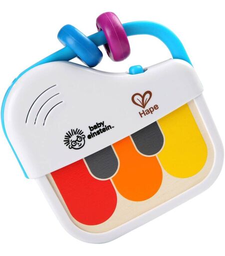 Mit dem Mini Touch Klavier von Hape trainieren kleine Nachwuchs-Pianisten ihre Fingerfertigkeit. Mini Touch Klavier der Linie baby einstein von Hape bewegliche Kunststoffringe Touch-Technologie Batterien 3x AAA enthalten ab 3 Monaten Kunststoff Das Mini Touch Klavier stellt aufgeweckte Kids gleich vor zwei Herausforderungen. Der Nachwuchs kann durch Drücken der aufgemalten Tasten selbstständig Töne erzeugen. Bereits Kindern ab drei Monaten gelingt das Bedienen der Touch-Technologie. Haben die Kleinen genug davon, der Musik zu lauschen, bieten die beweglichen Kunststoffringe eine weitere Art der Beschäftigung. Die Kids können sie hin- und herschieben und spielerisch ihre Motorik verbessern. Aufgrund seiner kompakten Größe ist das Klavier auch ideal für unterwegs. ...