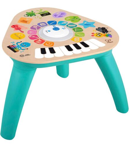 Mit dem Spieltisch Magic Touch von Hape kann der kreative Nachwuchs über 22 verschiedene Instrumente ausprobieren. Individuelle Kompositionen sorgen für kreatives Spiel. Spieltisch Magic Touch der Linie baby einstein von Hape Lautstärkeregler, 22 Instrumententasten, drei verschiedene Sprachen (DE / IT / EN) Soundeffekte, Musikfunktion, Batterien 3x AA enthalten aus robustem Holz und Kunststoff ab 12 Monaten Ein tolles Geschenk für kleine Komponisten: Der Spieltisch lässt verschiedene Instrumente in ihrem ganz speziellen Klang ertönen. So können sich Kids mit den Sounds des Banjos, der Gitarre, der Harfe, eines Saxophons oder anderer Instrumente vertraut machen. Der Spieltisch ermöglicht Minis, ihre ganz individuellen Kompositionen zu kreieren. Es lassen sich eigene Musik-Loops zusammenstellen. Der Clou: Auf Wunsch erklingen mehrere verschiedene Instrumente gleichzeitig. So trainieren Kinder ihren Hörsinn, intuitive Fähigkeiten und kreatives Spiel. Dank der patentierten Touch Cap Technologie reicht schon eine leichte Berührung aus, um Töne zu erzeugen. Von der Farbenlehre bis hin zur Instrumentenkunde – in drei verschiedenen Sprachen fördert das Touch Orchester die Entwicklung feinmotorischer Fähigkeiten und bietet jede Menge Spielspaß. ...