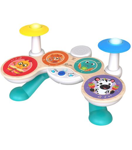 Mit dem Schlagzeug Together in TuneTM von Hape entdecken Kinder ab sechs Monaten den Spaß an Musik und Tönen. Together in Tune DrumsTM der Linie baby Einstein von Hape mit 10 Melodien 3 Spiel-Modi: Komponieren, kreatives Spiel und freies Spiel Trommeln mit magischer Cap-Touch-Oberfläche, Lautstärkeregler, "connect"-Funktion für Bandmodus ca. 38(L) x 23(B) x 19,9(H) cm aus Holz und Kunststoff ab 6 Monaten geeignet Kleine Nachwuchs-Musiker können mit dem Schlagzeug ihre Liebe zur Musik entdecken. Das Spielzeug verfügt über drei verschiedene Spielmodi: Das Kind kann eingespeicherten Melodien lauschen oder selbst kreativ werden. Zudem bietet die "connect"-Funktion die Möglichkeit verschiedene Musikinstrumente der "Together in TuneTM"-Reihe miteinander zu koppeln und so die erste eigene kleine Band zu starten. Die Magic Touch Funktion der Trommeln lässt sich auch von kleinen Händen problemlos bedienen, da die Trommeln nicht auf Druck reagieren, sondern auf die sanftesten Berührungen der bunten Flächen. Die Lautstärke des Schlagzeugs lässt sich über einen praktischen Regler einstellen. Hinweis Kann mit den Produkten der "Together in TuneTM"-Reihe verbunden werden. Diese sind separat erhältlich. ...