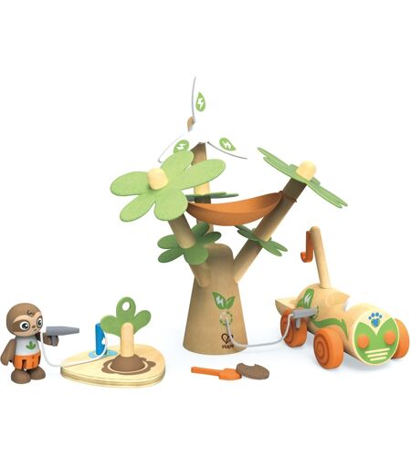 Mit diesem Spielset von Hape lernen Kinder ab 3 Jahren Aria und ihr energieeffizientes Auto kennen. Dieses aus Holz und Bio-Kunststoff hergestellte Set führt Kinder in die Welt der erneuerbaren Energien ein. Das Auto mit Pflanz-Vorrichtung für einen Baum, eine Windkraft-Turbine und eine elektrische Ladestation sind tolle Spielelemente. Mit dabei sind außerdem ein kleiner Baum zum Einpflanzen, eine Pfanzfläche, eine Schaufel und die Faultier-Figur Aria. Die Figur kann sitzen, stehen und Zubehör in ihren Händen halten. Die Sets der Reihe "Green Planet Explorers" drehen sich um das Thema Nachhaltigkeit und Naturschutz. Die Sets regen Kinder dazu an, sich aktiv und kreativ im freien Spiel mit Umweltschutzthemen auseinanderzusetzen. ...