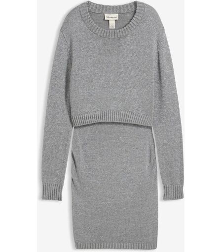 bonprix 2-teiliges Umstandsset aus Pullover und Rock aus Baumwolle mit Glanzgarn grau 52/48/44/32/36/40
