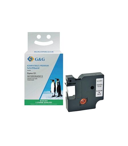 G&G Schriftband D1 ersetzt Dymo 45013/S0720530 10286, 12,0 mm schwarz auf weiß
