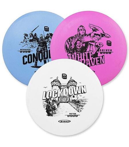 Guru Disc Golf Starter-Set, 3-teilig Wurfspiel, Inhalt: White Raven (7/6/-3/1): Fairway Driver Für große Reichweiten, Conquest (5/4/-2/1): Midrange Disc Für Rückhand-/Vorhandwürfe, Lockdown (3/3/0/2): Putter für präzisen Wurf, ausgezeichnete Windstabilität Faarbbezeichnung: Bunt ...