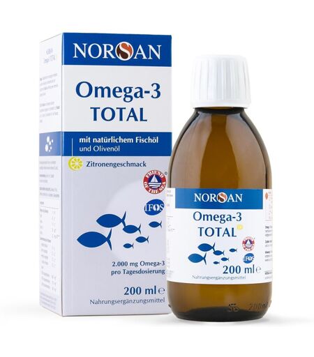 Anwendungsgebiet von Norsan Omega 3 Total Fischöl flüssig ZitroneNorsan Omega 3 Total Fischöl flüssig Zitrone ist eine einzigartige Kombination aus einem natürlichen Fischöl aus Wildfang mit hohem EPA-Gehalt sowie einem kaltgepressten Olivenöl aus kontrolliertem biologischen Anbau mit hohem Gehalt an Polyphenolen. Eine Tagesdosis (8 ml/1 Esslöffel) liefert 2.000 mg Omega-3-Fettsäuren (EPA und DHA).Wirkstoffe / Inhaltsstoffe / ZutatenNorsan Omega 3 Total Fischöl flüssig Zitrone enthält: