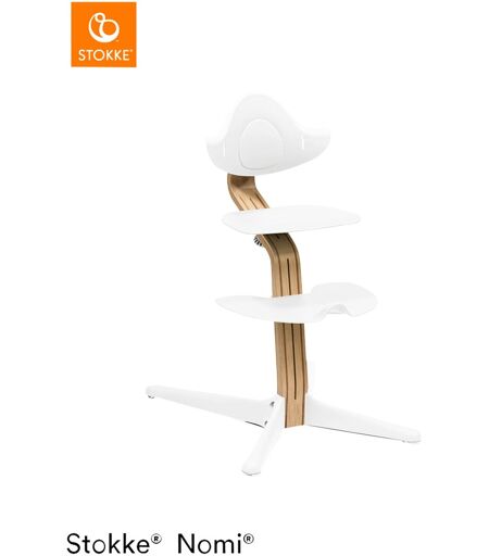 Der Stokke Hochstuhl Nomi ist mit bis zu 110 Kilogramm belastbar und ab drei Jahren nutzbar. So kann er praktisch ein Leben lang verwendet werden. Du kannst den Sitz, die Füßstütze und die Tiefe stufenlos verstellen und so immer wieder anpassen. Die Augenhöhe bei Tisch erleichtert Deinem Mini das Essenlernen und die Kommunikation am Esstisch. Das helle Eichenholz-Design bildet lässige Kontraste zu den Kunststoffelementen des Hochstuhls. Mit dem separat erhältlichen Newborn-Set ist der Stuhl bereits ab der Geburt nutzbar. Altersempfehlung: ab 3 Jahren; ab Geburt mit Newborn-Set (separat erhältlich); ab 6 Monaten mit Baby-Set (separat erhältlich); belastbar bis 110 kg Material: Mittelträger Eiche, Rückenlehne, Sitz, Fußstütze und Fußkreuz: Polypropylen, Schrauben Metall Verstellbarkeit: stufenlose Anpassung Sicherheit: kippsichere Rollen Lieferumfang: Hochstuhl-Montage-Set Nomi von Stokke inkl. Rückenlehne, Mittelträger, Fußkreuz, Fußplatte, Sitz Der Hochstuhl Nomi von Stokke lässt sich in der Sitzhöhe, der Sitztiefe jederzeit stufenlos an die veränderte Größe anpassen. Gleiches gilt für die Fußstütze – und das ganz ohne Werkzeug. Das bedeutet eine entspannte, ergonomisch gute Sitzposition in jedem Alter. Die perfekte Ergänzung sind hier das Newborn-Set, das Baby-Set und das Sitzkissen. Alle drei Artikel sind separat erhältlich. Ohne die zusätzlichen Sets lässt sich der Hochstuhl ab einem Kindesalter von drei Jahren nutzen. Peter Opsvik hat Nomi nach den gleichen Richtlinien kreiert wie den bekannten Stuhl Tripp Trapp. Dem Mini kommt dabei die Anpassung der physischen Umgebung zugute: Sie ermuntert ihn, selbstständig das Essen zu lernen. Augenkontakt und Augenhöhe mit Eltern und Geschwistern sind im Nomi-Stuhl jederzeit eine Selbstverständlichkeit. Das Kind ist so auch nicht abgelenkt und konzentriert sich auf die Mahlzeit. Der stabile Mittelträger verleiht dem Hochstuhl seine Robustheit. Er ist verfügt über eine lange Haltbarkeit und eine große Flexibilität. Mit seinem Leichtgewicht von knapp fünf Kilogramm lässt er sich auch problemlos überall dort verwenden, wo er gebraucht wird. Die Rollen laufen leicht und geräuscharm über den Boden. Sie erleichtern spürbar den Wechsel vom Ess- zum Wohn- oder Kinderzimmer. Während der Mahlzeit kann schon mal etwas auf dem Boden landen. Wenn Du es wegwischen möchtest, hängst Du den Stuhl einfach an der Tischkante auf. Er ist mit bis zu 110 Kilogramm belastbar. So kann auch ein Schulkind, ein Jugendlicher oder Erwachsener bequem darauf Platz nehmen. Das klare Design mit der norwegischen Silhouette lässt sich in zahlreiche Ambientes unkompliziert einfügen. Der Mittelträger des Hochstuhls wird aus Eichenholz gefertigt. Hinweis Das Newborn-Set, das Baby-Set und das Sitzkissen sind nicht im Lieferumfang enthalten. Bitte separat bestellen. ...