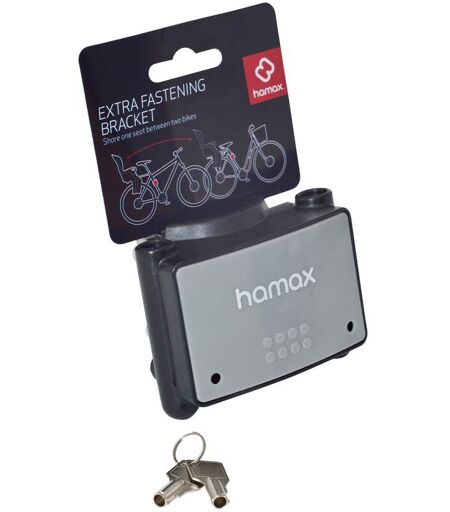 Mit der abschließbaren Montagehalterung werden hinten zu montierende Fahrradkindersitze von hamax an einem Bügel am Bike befestigt. Das Diebstahlrisiko wird so verringert. Montagehalterung von hamax passend für Caress, Zenith, Amaze, Siesta, Sleepy, Smiley von hamax federgespannte Verriegelung grüne Anzeigen zeigen korrekte Montage an passend für fast alle Fahrradtypen und Rahmendurchmesser von 28-40 mm gleichmäßige Verteilung der Kräfte auf die Rahmen einfache Montage Quick Release System löst den Sitz vom Fahrrad Sämtliche hinten anzubringenden hamax-Kindersitze werden mit der Montagehalterung am Fahrrad befestigt. Der Sitz wird mit einem frei hängenden Tragebügel mit dem Bike verbunden. So braucht das Rad keinen Gepäckträger, um den Sitz zu transportieren. Die Farbanzeigen zeigen zuverlässig die korrekte Montage an. Das Quick Release System erlaubt es den Eltern, den Sitz im Nu vom Fahrrad zu entfernen. Der Einbau der Halterung geht schnell von der Hand. Die Halterung ist für alle hinten am Bike zu befestigenden Fahrradsitze von hamax geeignet. ...