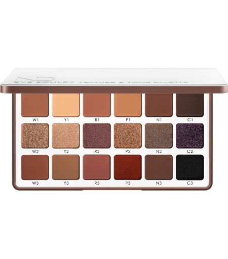Unleash your inner artist with Natasha Denona’s Eye Sculpt Texture and Tone Eyeshadow Palette, a visionary collection of 24 expertly curated shades. Thoughtfully arranged into six vertical columns, each one is tailored to a specific undertone - rosy, peachy, yellow, cool, warm, and neutral - so you can create a look that feels unique to you. In terms of variety, you'll find matte, cream-matte, and metallic finishes in the palette. From soft nudes and pinks to incremental browns and blacks, the range works its way into natural or full-glam finishes. The formula used in each shade is skin-friendly, soft, and seamless to blend out. Highlight your gaze using the lighter shades or contour with deeper, richer tones. ...