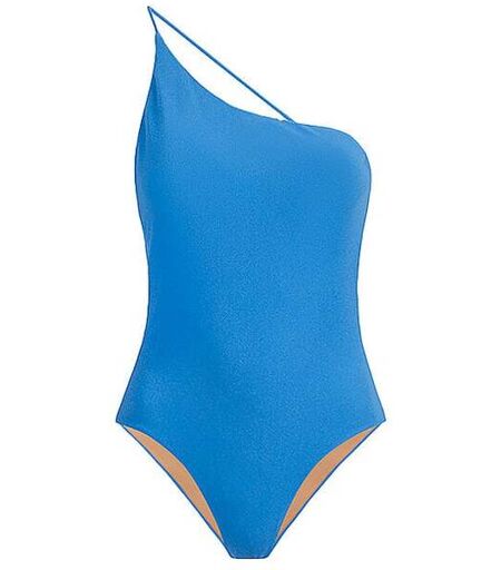 Damen Badeanzug mit Frottee Struktur Asymmetrischer Träger Gefüttert Unifarben Farbbezeichnung: Positano Material: 90% Nylon recycelt,10% Elasthan ...