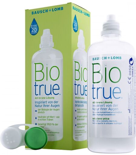 Biotrue All in one Lösung wirkt desinfizierend und kann zur Abspülung und Aufbewahrung Ihrer Kontaktlinsen verwendet werden. Denn Biotrue All in one Lösung tötet schädliche Mikroorganismen ab und umhüllt Ihre Kontaktlinsen während der Einwirkzeit in einem feuchtem Kissen mit einem ph-Brereich von 7,5. Dieser Vorgang bewirkt, dass Biotrue All in one Lösung dazu führt, dass der Tragekomfort Ihrer Linsen erhöht wird und Sie sich angenehm über den ganzen Tag (bis zu 20 Stunden) tragen lassen.