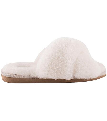 Trendige Damen Slipper aus weichem Schaffell Breiter, überlappender Oberteil Weiche Innensohle aus Schaffell Rutschfeste Außensohle aus EVA Farbe: Creme ...