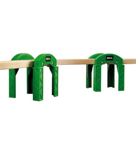Ein Eisenbahnerlebnis auf einer höheren Ebene. Damit kommt die BRIO Bahn noch höher hinaus. Mit Hilfe der Stützen kann man eine Brücke, einen Tunnel oder eine spannende Eisenbahnlandschaft mit mehreren Ebenen bauen. In geschäftigen Städten kann der Platz für neue Gleise eng werden. Mit diesem stapelbaren Brückensystem ist das Problem gelöst! Baue auf einer Ebene einen Tunnel oder eine Brücke. Setze eine weitere Ebene darauf, und Du verdreifachst das Erlebnis. ...