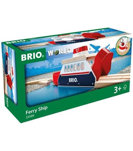 BRIO Fährschiff. Schiff ahoi! Züge können nicht übers Wasser fahren, aber Fähren. Bring die Züge auf der Fähre trocken zum anderen Ufer. Das Schiffshorn ertönt und das Licht geht an, wenn man den Knopf drückt. Mit den beiden enthaltenen Anschlussgleisen kann man die Fähre überall an BRIO Schienenstreckenankoppeln. Heck- und Bugklappen öffnen sich bei Ankunft automatisch. Für Kinder . 2 x LR44 (sind enthalten). ...