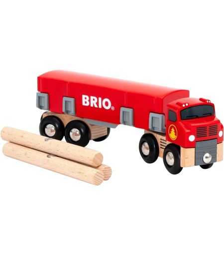 Der Holztransporter ist bereit, einige schwere Lasten durch die BRIO World zu transportieren. Dieser lange rote Sattelschlepper mit abnehmbarem Anhänger verfügt über einen verborgenen Motor, der bei nach vorne gekippter Sattelschlepperkabine zu finden ist, sowie über die serienmäßige BRIO-Magnetkupplung, die eine Verbindung zu anderen BRIO World-Wagen herstellen kann. Hebt man die rote Anhängerabdeckung ab, kommt man an die drei sicher darunter gelagerten Baumstämme. Diese sind mit jeweils einem Metallstift für die Verbindung mit einem Magnetkran der BRIO World ausgestattet. Das reale Eisenbahnspiel hilft Kindern, ihre Umwelt auf spielerische Weise zu verstehen und kennenzulernen, und fördert gleichzeitig die Feinmotorik. Für Kinder ab 3 Jahren empfohlen. ...