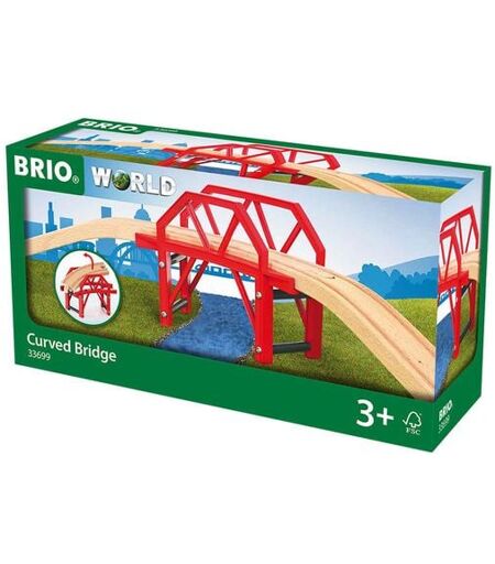 Kurven- Brücke mit zwei ansteigenden Holzschienen, kompatibel mit den Zügen und Schienen von BRIO. Ermöglicht flexible Schienenkombinationen für neue Abenteuer. . ...