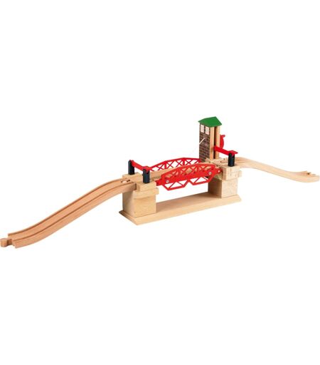 Jetzt ist das Schiff an der Reihe zu passieren. Einfach an der Kurbel drehen, schon hebt und senkt sich die Hebebrücke. Schließe aber vorher die Schranken. Enthält zwei Rampengleise, um sie an deine BRIO Strecken anzuschließen. ...