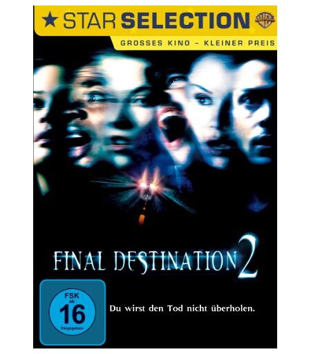 AspectRatio : 1.85 : 1, AudienceRating : Freigegeben ab 16 Jahren, Brand : Warner Home, Binding : DVD, Label : Warner Home Video - DVD, Publisher : Warner Home Video - DVD, RegionCode : 2, Format : Dolby, Feature : FSK 16, medium : DVD, publicationDate : 2003-11-01, releaseDate : 2003-11-20, runningTime : 87 minutes, theatricalReleaseDate : 2003-01-01, actors : Ali Larter, Cook, A J, Michael Landes, Keegan Connor Tracy, Sarah Carter, Jonathan Cherry, Lynda Boyd, David Paetkau, Justina Machado, James Kirk, Tony Todd, directors : David R. Ellis, music : Shirley Walker, languages : german ...