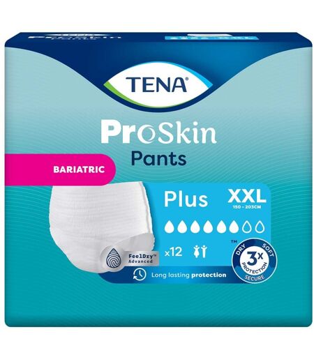 Die Tena Pants Bariatric Plus Xxl Einweghose ist speziell für Anwender mit Übergewicht, die unter Inkontinenz leiden. Die komplett atmungsaktive Einweghose passt sich individuell an und sorgt für einen idealen und rutschfesten Sitz. Flexible Strech-Einsätze in Kombination mit elastischen Beinöffnungen ermöglichen eine körpernahe und bequeme Passform. Mit den atmungsaktiven Seitenteilen und dem textilähnlichen Design bieten die Tena Pants Bariatric Plus Xxl Einweghose eine gute Luftzirkulation. Die Haut bleibt trocken und die natürliche Gesundheit wird geschützt. Die FeelDry Technologie sorgt dafür, dass auch große Mengen Flüssigkeit sehr schnell in den Saugkern geleitet werden. Der Urin bleibt auch unter Druck sicher eingeschlossen. Dadurch ergibt sich mehr Komfort und eine bessere Hautgesundheit.