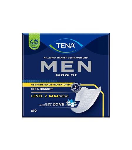 Selbstbewusst durch den Tag – mit TENA Slipeinlagen MEN ACTIVE FIT LEVEL 2 Ob beim Sport, im Büro oder unterwegs – mit den TENA MEN ACTIVE FIT LEVEL 2 genießen aktive Männer jederzeit zuverlässigen Schutz. Speziell für die männliche Anatomie entwickelt, sitzen die Einlagen diskret im Slip und bieten ein Plus an Sicherheit, ohne aufzutragen. Starker Schutz bei mittlerem HarnverlustDank der leistungsstarken Absorptionszone werden Flüssigkeit und Gerüche sofort sicher eingeschlossen. So fühlen Sie sich rundum trocken, geschützt und können sich ganz auf das konzentrieren, was Ihnen wichtig ist. Atmungsaktiv & dermatologisch getestet Die hautfreundlichen Materialien sind atmungsaktiv und sorgen für ein frisches Tragegefühl den ganzen Tag über. Zudem sind die Slipeinlagen dermatologisch getestet, was für zusätzliche Sicherheit und ein angenehmes Hautgefühl sorgt. Maximaler TragekomfortDer flexible, körpernahe Sitz garantiert, dass die Einlagen auch bei Bewegung sicher an Ort und Stelle bleiben – für ein natürliches und sicheres Gefühl in jeder Situation. Praktische Einzelverpackung Für maximale Hygiene und Komfort ist jede Einlage einzeln verpackt – ideal zum Mitnehmen im Alltag, auf Reisen oder ins Fitnessstudio.Vertrauen auch Sie wie Millionen Männer auf TENA und bestellen Sie die Slipeinlagen MEN ACTIVE FIT LEVEL 2 im Pack mit 10 St. jetzt online. ...