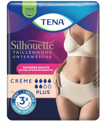 Anwendungsgebiet von Tena Silhouette Plus L Creme Inkontinenz PantsDie Tena Silhouette Plus L Creme Inkontinenz Pants bieten einen diskreten und unsichtbaren Schutz bei Blasenschwäche. Die Tena Silhouette Plus L Creme Inkontinenz Pants setzen auf elegante Passform mit höherem Taillenbund.Eleganz trifft Diskretion – die TENA Silhouette Plus Einwegunterwäsche für FrauenDie Tena Silhouette Plus L Creme Inkontinenz Pants mit hoher Taille vereinen stilvolles Design mit zuverlässigem Schutz bei mittlerer bis stärkerer Blasenschwäche – ideal auch für die Zeit nach der Entbindung.Dank ihres besonders dünnen, taillenhohen Schnitts tragen sich diese Slips angenehm unauffällig unter Ihrer Kleidung. Sie genießen maximale Freiheit bei der Kleiderwahl und können sich stets rundum wohlfühlen. Das gewellte Bündchen und das dezente, crèmefarbene Design lassen die Einwegunterwäsche wie normale Unterwäsche erscheinen – für ein sicheres, feminines Tragegefühl ohne Kompromisse in Sachen Schutz.Im Unterschied zu herkömmlichen Inkontinenzprodukten bietet Tena Silhouette Plus L Creme Inkontinenz Pants eine anschmiegsame, körpernahe Passform. Das atmungsaktive Micro-Stretch-Material sorgt dafür, dass Sie sich den ganzen Tag frei bewegen können. Die Einwegunterwäsche verzichtet im Schrittbereich vollständig auf Nähte und fühlt sich dadurch angenehm glatt und natürlich an – beinahe wie Ihre gewohnte Unterwäsche.Erleben Sie den bewährten Dreifachschutz: Der saugstarke Kern mit 3D-Absorptionszone nimmt selbst größere Flüssigkeitsmengen zuverlässig auf, leitet sie effektiv ab und neutralisiert dabei Gerüche durch gezielte Ammoniakbindung. Spezielle Kanäle im Inneren sorgen für eine gleichmäßige Verteilung der Flüssigkeit – für verlässlichen Schutz vor dem Auslaufen und eine optimierte, glatte Passform ohne Aufblähen.Selbstverständlich ist das Produkt dermatologisch getestet und parfümfrei – für ein besonders hautfreundliches Tragee ...
