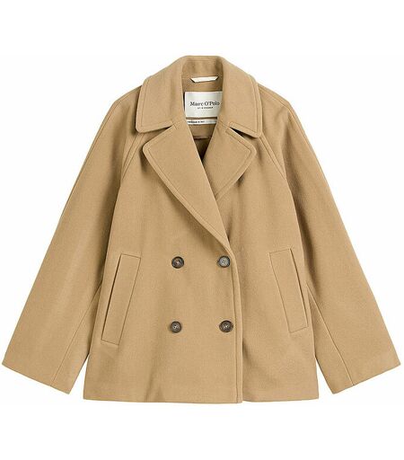 Damen Jacke aus warmer Woll-Mischung Reverskragen Schließt doppelreihig mit Knöpfen Lange Raglanärmel Seitliche Eingrifftaschen Gerade Passform Unifarben Farbbezeichnung: Pure Sand Material: 80% Wolle, 20% Polyamid Die Marke Marc O`Polo ist Mitglied der Fair Wear Foundation. ...