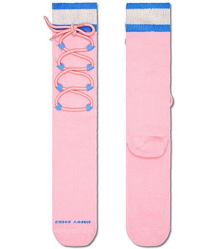 Damen Socken aus weichem Baumwoll-Mix Mit dekorativer Schnürung One Size - Gr. 36-40 Hoher Schaft Rippmuster Farbbezeichnung: LIght Pink Material: 86% Baumwolle, 12% Polyamid, 2% Elastan ...