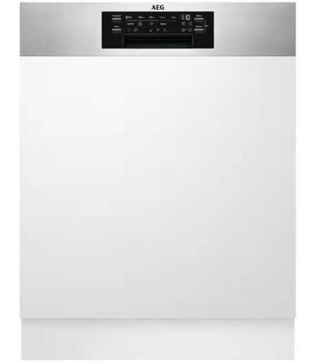 AEG Geschirrspüler der Serie 5000 mit AirDry: Die Tür der Geschirrspüler der Serie 5000 mit AirDry öffnet sich automatisch am Ende der Trocknungsphase, um das Geschirr natürlich und effektiv zu trocknen. AirDry bietet eine dreimal bessere Leistung als Systeme mit geschlossener Tür. Produkt-Highlights:: AirDry: Kein Nachtrocknen: In den letzten 10 Minuten der Abschlussphase des Spülgangs öffnet sich die Tür einen Spalt weit von selbst. Aufgrund des dadurch entstehenden natürlichen Luftstroms trocknet das Geschirr fleckenfrei. Nach Abschluss des Programms kann somit alles ohne aufwändiges Nachtrocknen ausgeräumt werden.; MaxiFlex Besteckschublade: Ideal für sperrige Küchenutensilien: Die flexible Besteckschublade bietet ausreichend Platz, selbst für sperrige Küchenhelfer. Die Icons auf der Schublade helfen dir beim Einsortieren. So findet jedes Teil den passenden Platz und kann effektiv gereinigt werden - vom Suppenschöpfer bis hin zum Brotmesser.; QuickLift: Höhenverstellbarer Oberkorb: Wenn du einmal mehr Platz für sperriges Geschirr, zum Beispiel für Töpfe oder eine Salatschüssel benötigst, kann die Höhe des Oberkorbes an größere Gegenstände angepasst werden – das geht sogar, wenn der Geschirrspüler voll beladen ist.; 30 Minuten-Programm: Schnelle und effiziente Reinigung: Das Kurzprogramm reinigt eine Ladung leicht verschmutztes Tafelgeschirr in nur 30 Minuten – schnell und überzeugend.; LeistungseigenschaftenWarm- oder Kaltwasseranschluss; Warmwasseranschluß bis max. 60 °C; Anschlusswert: 2,2 kW; Angabe gem. EU-Verordnung 2019/2017; Energieeffizienzklasse A; Spektrum [A bis G]; Inverter-Technologie; 54 kWh Energieverbrauch eco/100 Zyklen; 10,9 l Wasserverbrauch Eco/Betriebszyklus; Programmdauer: 270 Min.; Raum für 14 Maßgedecke; Betriebsgeräusch: 43 dBA; Geräuschemissionsklasse B; 220-240V 50/60Hz Netzanschluss; 10 A Absicherung; AusstattungAqua-Stopp; BedienungBedienung durch Soft-Touch; Abschaltautomatik; Start-Vorwahl; max. 24 Std. vorprogrammierb. Startzeit; Restzeitanzeige; elektrische Salz-Nachfüllanzeige; elektrische Klarspüler-Nachfüllanzeige; Türöffnungsautomatik; Display-Anzeige; Programme9 Spül-Progr.; 4 Temperatur(en); Gläser-Programm; Kurz-Programm; Vorspülen; Hygiene-Programm; Reinigungsprogramm; Beschaffenheit des SpülraumesBesteck-Schublade; höhenverstellbarer Oberkorb; Oberkorb beladen höhenverstellbar; Oberkorb mit Tassenauflage; klappbarer Tellereinsatz; Gehäuse-EigenschaftenBreite: 59,6 cm; Höhe: 81,8 cm; Tiefe: 58 cm; Leergewicht: 37,6 kg; Einbau-EigenschaftenNischen-Breite: 60 cm; Nischen-Höhe: 82 cm; Nischen-Tiefe: 58 cm; Edelstahl-Front; Länge der Anschlussleitung: 160 cm; VerpackungsangabenBreite mit Verpackung: 63,5 cm; Höhe mit Verpackung: 87 cm; Tiefe mit Verpackung: 68 cm; Gewicht mit Verpackung: 40 kg; ...