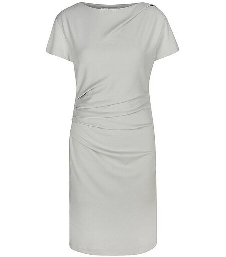 Elegantes Damen Minikleid aus leichtem Punto-Milano-Jersey U-Boot-Ausschnitt Kurzarm Drapierte Falten an der Taille Schließt mit Reißverschluss in der Seitennaht Knielang Länge:ca 99cm Schmale Passform Unifarben Farbbezeichnung: Grey Stone Material: 69% Viskose, 26% Polyamid, 5% Elasthan ...