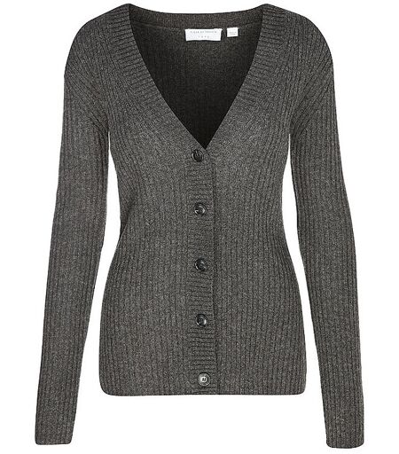 Damen Cardigan aus Woll-Mix V-Ausschnitt Langarm Schließt mit Knöpfen Ripp-Struktur Gerade Passform Unifarben Farbbezeichnung: Dark Grey Melange Material: 50% Wolle, 50% Yak ...