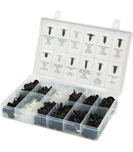Mit diesem Sortiment an hervorragenden Clips können Sie verschiedene kleine und größere Teile und Verkleidungen in Fahrzeugen sicher fixieren. Die Clips sind sehr flexibel einsetzbar, sodass dieses Set ein Must-have für Profis und Heimwerker, die ihr Hobby ernst nehmen, darstellt. ...