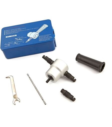 Dieser HBM Knabber ist ein Muss für den Profi und den Heimwerker. Eisen-, Kupfer-, Stahl- oder Aluminiumbleche schneiden Sie im Handumdrehen in jeder Richtung und in jedem Winkel. Eine Nachbearbeitung durch Schleifen zur Entfernung von Graten ist nicht erforderlich, da das Blech nicht beschädigt wird. Mit dieser Schere können Sie auch andere Materialien, wie beispielsweise Kunststoffplatten, schneiden. Der Knabber ist schnell auf einer pneumatischen oder elektrischen Bohrmaschine montiert. Praktisch für den schnellen Zuschnitt von (Well-)Plattenmaterial. ...