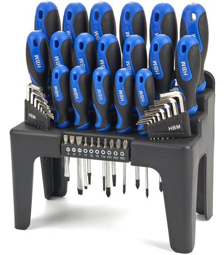 Fehlt dir ständig der passende Schraubendreher? Mit dem 44-teiligen HBM Schraubendreher-Set löst du das Problem. Es enthält Schraubendreher in vielen Größen sowie einen Inbusschlüssel- und Bit-Satz. Für Profis, Heimwerker, Hobby oder Zuhause. Die komplette Ausrüstung steckt in einem formschönen Wandhalter, der sich einfach montieren lässt. ...