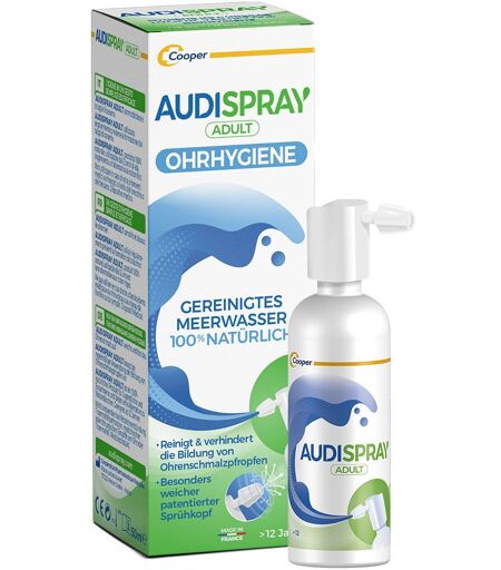 Saubere Ohren hören besser“Audispray: - Medizinprodukt für die Ohrenreinigung - 100% natürliches Produkt (aus Meerwasser) - Präventiv einsetzbar - Produkt für die ganze FamilieAnwendungsgebiet: Mit Audispray ist auch die Ohrhygiene einfach und schnell zu erledigen. Audispray löst den Ohrenschmalz mit einer mikrobiologisch getesteten Meerwasserlösung. Mit Audispray können Sie sowohl Staub und Schmutz entfernen als auch einer Pfropfenbildung vorbeugen. Somit entfällt die Reinigung mit einem Wattestäbchen. Audispray ist für die ganze Familie geeignet, und kann ab 12 Jahren verwendet werden. Audispray enthält keine chemischen Inhaltsstoffe und ist somit sehr gut verträglich. Wirkstoff: MeerwasserGegenanzeigen:Bei bekannter Überempfindlichkeit gegenüber einem der oben genannten Inhaltsstoffe sollte dieses Produkt nicht angewendet werden.Dosierung:Anwendungsempfehlung: Halten Sie die Audispray Dose an das betreffende Ohr und drücken Sie den Sprühknopf für 1 Sekunde. Massieren Sie den Ohransatz anschließend für 10 Sekunden mit einem Tuch oder dem Finger, um die Flüssigkeit im Ohr zu verteilen. Halten Sie Ihren Kopf abschließend leicht schräg und fangen Sie die austretende Flüssigkeit mit einem Tuch auf. Wiederholen Sie den Vorgang gegebenenfalls mit dem anderen Ohr.Audispray sollte je nach Bedarf 1-2 pro Woche verwendet werden. ...