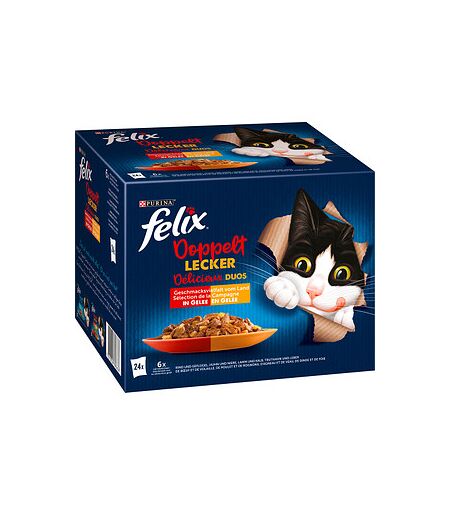 felix® Katzen-Nassfutter Doppelt lecker Délicieux duos Geschmacksvielfalt vom Land in Gelee 24x 85,0 g