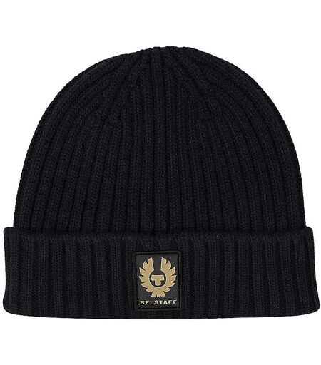 Herren Mütze aus reiner Wolle Gerippter Strick Logo Patch vorne Umschlag Farbbezeichnung: Dark Navy Material: 100% Wolle ...