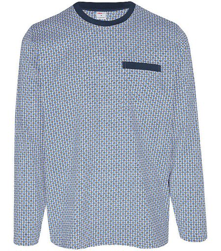 Herren Pyjama aus reiner Baumwolle Rundhalsausschnitt Langarm Eine aufgesetzte Brusttasche Grafischer Print Hose mit bequemen Bund Unifarben Lockere Passform Farbbezeichnung: 1 Material: 100% Baumwolle ...