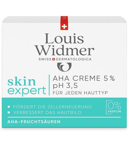 Anwendungsgebiet von Louis Widmer skinexpert AHA Creme 5% unparfümiertLouis Widmer skinexpert AHA Creme 5% unparfümiert ist eine Intensivbehandlung mit AHA. Die Pflege stimuliert die Zellerneuerung und sorgt so für glattere und weichere Haut.