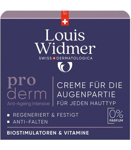 Anwendungsgebiet von Louis Widmer proderm Creme für die Augenpartie o.pLouis Widmer proderm Creme für die Augenpartie o.p ist eine intensiv wirkende Anti-Aging Creme, die das Hautgewebe befeuchtet und pflegt und somit ausgeprägte Falten reduziert.Wirkungsweise von Louis Widmer proderm Creme für die Augenpartie o.p1.    Die Wirkstoffe dringen in erhöhter Dosierung in tiefere Hautschichten ein2.    Diese Creme ist auf die speziellen Eigenschaften und Bedürfnisse besonders empfindlicher und strapazierter Hautpartien (z.B. Augen- und Halspartie) abgestimmt, kann aber auch als Intensivcreme für das ganze Gesicht verwendet werden3.    Spezielle Formulierung, so dass eine Reizung und ein Anschwellen der Augenpartien kaum möglich sind4.    Enthält natürliche Feuchthaltesubstanzen, welche auch die tiefer gelegenen Hautschichten erreichen können5.    Der Biostimulatoren-Komplex befeuchtet die Haut, sie wird weich, geschmeidig und elastisch6.    Panthenol verbessert das Feuchthaltevermögen und beruhigt irritierte Haut7.    Vitamin A fördert die Durchblutung und normalisiert die Verhornung8.    Vitamin E neutralisiert schädliche freie RadikaleWirkstoffe / Inhaltsstoffe / ZutatenLouis Widmer proderm Creme für die Augenpartie o.p enthält: