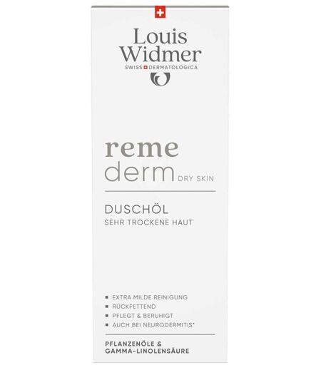 Anwendungsgebiet von Louis Widmer remederm DuschölDas Louis Widmer remederm Duschöl wurde speziell für trockene, gereizte und gerötete Haut entwickelt und eignet sich hervorragend für die tägliche Pflege besonders empfindlicher Haut – sei es bei Kindern, Erwachsenen oder älteren Menschen.Wirkungsweise von Louis Widmer remederm DuschölHochwertige pflanzliche Öle reinigen die Haut sanft und pflegen sie bereits während des Duschens, ohne sie auszutrocknen. Ein zentraler Bestandteil ist das Borretschöl, das reich an Gamma-Linolensäure ist – einer wertvollen Substanz, die besonders bei empfindlicher und problematischer Haut wohltuend wirkt. Zusätzlich beruhigen Panthenol und Bisabolol gereizte und/oder gerötete Hautpartien und sorgen für ein angenehmes, gepflegtes Hautgefühl.Wirkstoffe / Inhaltsstoffe / ZutatenLouis Widmer remederm Duschöl enthält: