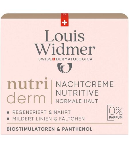 Anwendungsgebiet von Louis Widmer nutriderm Nachtcreme Nutritive unparfümiertDie Louis Widmer nutriderm Nachtcreme Nutritive unparfümiert ist eine reichhaltige Pflegeformel für die nächtliche Regeneration trockener und empfindlicher Haut. Sie versorgt die Haut intensiv mit Nährstoffen, spendet langanhaltende Feuchtigkeit und fördert die natürliche Regeneration des Hautgewebes über Nacht – ganz ohne reizende Duftstoffe.Wirkungsweise von Louis Widmer nutriderm Nachtcreme Nutritive unparfümiertDie Creme nährt, befeuchtet und regeneriert die Haut in der Tiefe und unterstützt so die Erholung der Hautzellen nach den Belastungen des Tages. Dank ihrer ausgewählten Pflegewirkstoffe verbessert sie das Feuchthaltevermögen spürbar, was die Haut glatter und widerstandsfähiger macht. Gleichzeitig wirkt sie beruhigend auf irritierte Haut und lindert Spannungsgefühle.Bei regelmäßiger Anwendung wird die Haut spürbar weicher, geschmeidiger und elastischer. Am Morgen erscheint sie sichtbar gestärkt, gut durchfeuchtet und rundum gepflegt – bereit für den neuen Tag.Wirkstoffe / Inhaltsstoffe / ZutatenLouis Widmer nutriderm Nachtcreme Nutritive unparfümiert enthält: