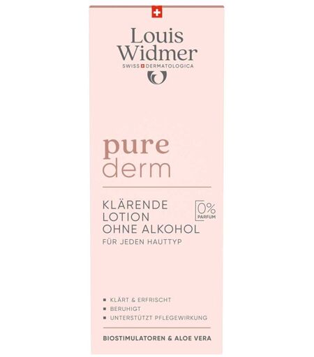 Anwendungsgebiet von Louis Widmer purederm klärende Lotion ohne Alkohol o.pDie Louis Widmer purederm klärende Lotion ohne Alkohol o.p ist eine sanfte, alkoholfreie Gesichtslotion mit Aloe Vera, die für die tägliche Anwendung und zur optimalen Vorbereitung der Haut auf die nachfolgende Pflege entwickelt wurde. Sie eignet sich für jeden Hauttyp, insbesondere jedoch für empfindliche, gereizte oder zu Irritationen neigende Haut. Durch ihre beruhigenden und hydratisierenden Eigenschaften ist sie ein idealer Bestandteil der Hautpflegeroutine – morgens und abends nach der Reinigung.Wirkungsweise von Louis Widmer purederm klärende Lotion ohne Alkohol o.pDie Widmer Purederm Klärende Lotion ohne Alkohol verbessert mit ihrem Biostimulatoren-Komplex das Wasserbindevermögen der Haut und sorgt so für eine intensive Hydratation. Panthenol und Aloe Vera wirken kühlend und beruhigend auf gereizte oder irritierte Haut, wodurch Rötungen und Spannungsgefühle gemindert werden. Gleichzeitig bereitet die Lotion die Haut optimal auf die nachfolgende Pflege vor, indem sie deren Aufnahmefähigkeit für Wirkstoffe erhöht und so die Wirksamkeit weiterer Produkte verbessert.Wirkstoffe / Inhaltsstoffe / ZutatenLouis Widmer purederm klärende Lotion ohne Alkohol o.p enthält: