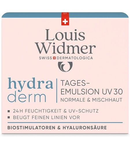 Anwendungsgebiet von Louis Widmer hydraderm Tagesemulsion UV 30Louis Widmer hydraderm Tagesemulsion UV 30 ist ideal als tägliche Pflege für normale bis trockene Haut mit erhöhtem Bedarf an Schutz vor UV-Strahlen und Umweltstress. Besonders geeignet bei ersten Anzeichen der Hautalterung und zur Unterstützung der natürlichen Hautbarriere. Perfekt als Tagespflege mit hohem Lichtschutzfaktor – auch als Make-up-Unterlage.Wirkungsweise von Louis Widmer hydraderm Tagesemulsion UV 30Die Louis Widmer hydraderm Tagesemulsion UV 30 bietet eine effektive Kombination aus intensiver Feuchtigkeitspflege, zuverlässigem UV-Schutz und regenerierenden Anti-Aging-Wirkstoffen. Die leichte Gel-Emulsion zieht schnell ein, schützt mit UVA-/UVB-Filtern (LSF 30) vor vorzeitiger Hautalterung und negativen Umwelteinflüssen und bewahrt die natürlichen Hautfunktionen.Ein hochwirksamer Biostimulatoren-Komplex und Hyaluronsäure fördern die Hautelastizität und steigern das Feuchthaltevermögen. Shea Butter und Panthenol beruhigen, glätten und pflegen nachhaltig. Creatin unterstützt den Zellstoffwechsel, während Vitamin E antioxidativen Schutz und Reparaturprozesse aktiviert – für ein glattes, geschütztes Hautbild.✓ LSF 30 mit UVA-/UVB-Schutz✓ intensive Feuchtigkeit & Anti-Ageing✓ mit Biostimulatoren, Hyaluron, Creatin & Vitamin E✓ leicht parfümiert, ideal für empfindliche HautWirkstoffe / Inhaltsstoffe / ZutatenLouis Widmer hydraderm Tagesemulsion UV 30 enthält: