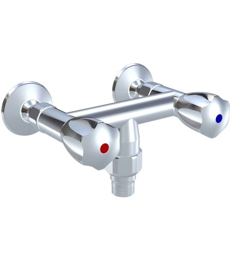 "Zweigriffmischer Mit Rohrunterbrecher KWC CORONA Metallgriffe abziehbar Eigensicher gegen Rückfließen Abgangsgewinde für Schlauchanschluss Flachtellerventiloberteil M20 x 1.25 Edelstahl Ventilsitz Wandanschlüsse3/4"" x 3/4"" nicht absperrbar L 40exzentrisch 7.5 mm" ...