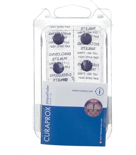 Die Plaque-Anfärbe-Tabletten zeigen Plaquestellen im Mund an, und es wir deutlich ersichtlich, wo nachgeputzt werden sollte. Nach ca. 30 Sekunden Kauen färbt die Tablette alte Plaque blau und neu gebildete Plaque rot. Erythrosin-frei (E127) 12 Plaque-Anfärbe-Tabletten CURAPROX Plaque-Anfärbe-Tabletten sind wertvolle Helfer mit Erfolgsgarantie. Sie zeigen Plaquestellen im Mund an, und es wir deutlich ersichtlich, wo nachgeputzt werden sollte. Ein Zusatzeffekt: Plaquefinder motiviert: Zu sehen, wie die Plaque weniger wird, ist die schönste Belohnung. Zweifarben-System: färbt alte, strukturierte Plaque blau und neu gebildete Plaque rot Erythrosin-frei (E127) Mit angenehmem Fruchtgeschmack ...