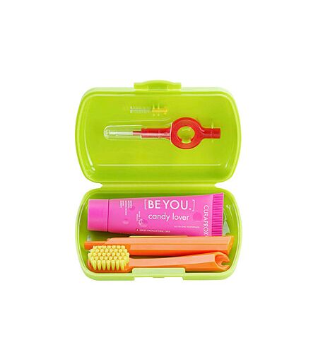 Klein, handlich und praktisch für unterwegs: die Curaprox Travel-Set Zahnbürste Genießen Sie, auch wenn Sie unterwegs sind, eine optimale und professionelle Zahnreinigung mit der Curaprox Travel-Set Zahnbürste in grün. Mit einer Größe von 9,5 x 6 cm ist die Zahnbürste superpraktisch für unterwegs – vor allem zum Reisen mit dem Auto oder dem Zug. Aber auch für Zuhause oder im Büro eignet sich die handliche Curaprox Travel-Set Zahnbürste hervorragend. Damit die Zahnbürste gut transportiert und verstaut werden kann, lässt sie sich ganz einfach auseinander- und wieder zusammenstecken.Sanfte CUREN®-BorstenMit den dicht aneinander liegenden CUREN®-Borsten haben hartnäckige Verschmutzungen und Plaque keine Chance. Die 5460 CUREN®-Filamente sind ultra soft und sanft zu Zähnen und Zahnfleisch. Die CUREN®-Borsten verhindern Putzschäden und sind äußerst stabil – im nassen wie im trockenen Zustand. Damit Sie direkt losputzen können, ist in dem Set eine 10 ml Tube der pflegenden und aufhellenden Zahnpasta "Be you" enthalten.Auch unterwegs ist eine professionelle Zahnreinigung kein Problem mehr dank der praktischen Curaprox Travel-Set Zahnbürste. Erhältlich direkt hier in unserem Online-Shop! ...