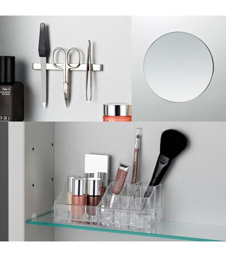 Accessoires Set Frame 25 Artikel: Accessoires Set Ausführung: bestehend aus frei platzierbarem Kosmetikspiegel, Magnetleiste für Pinzette etc. und Aufbewahrungsschalen Hersteller: LAUFEN Serie: Frame 25 Artikelnummer: H4906009000001 ...