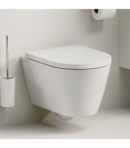 LAUFEN Wand-Tiefspül-WC Kartell, T:545mm, B:370mm, mit Silent-Flush, spülrandlos, weiss glänzend Details: Wandhängend Tiefspüler Abgang waagerecht Spülrandlos, daher keine verborgenen Stellen für Ablagerungen & Verschmutzungen Mit innovativer Spültechnologie für eine leise, wassersparende und kraftvolle Ausspülung (Silent Flush) Spülwasserbedarf: 3 Liter bei kleiner, 4,5 Liter bei großer Spültaste Inklusive Befestigungsmaterial (EasyFit) Inklusive Schallschutzset WC-Sitz bitte separat bestellen (finden Sie unter dem Reiter Zubehör) weitere Details: Artikelnummer: H8213310000001 Serie: Kartell LAUFEN Farbe: weiss glänzend Material WC: Sanitärkeramik Beschichtung: ohne Beschichtung Länge: 545mm Breite: 370mm Befestigungsabstand (cm): 18 Innenform: Tiefspüler Montageart: Wandmontage Abgang: waagerecht Geeignet: für Unterputz-Spülkasten Form: oval Spülrand: ohne Spülrand WC-Sitz: ohne WC-Sitz WC-Befestigung: unsichtbar Erklärung Silent Flush Mit der neuen Silent Flush Wirbelspültechnologie minimiert LAUFEN das Geräusch beim Ausspülen des WCs. Die innovative Spültechnologie leitet das Wasser in einem kraftvollen und superleisen Ausspülvorgang durch das WC-Innenbecken, das dabei wirkungsvoll gereinigt wird. Gleichzeitig wird der Wasserverbrauch gesenkt und die Badhygiene verbessert. ...