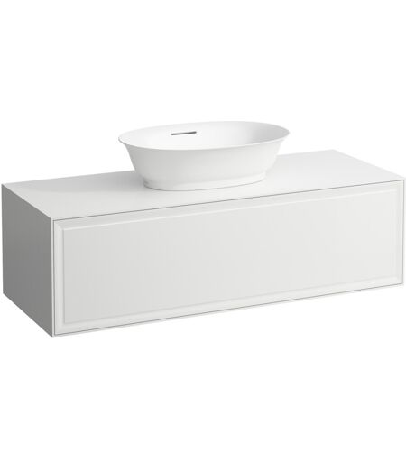 Schubladenelement The New Classic 1180x450x350, Verkehrsgrau Artikel: Schubladenelement Farbe: 627 Verkehrsgrau Material: Möbelfront: mit invertiertem Rahmendetail, bearbeitete MDF-Platte, verkehrsgrau lackiert Korpus: aus 18mm Spanplatte mit dunkelgrauem Melamin beschichtet, Aussenseiten aus 6 mm MDF-Platten, lackiert Schublade: lackiertmit Vollauszug, aus 12mm Spanplatte, mit dunkelgrauer Melaminbeschichtung Ausführung: 1 Schublade mit Push & Pull-Funktion SoftClose mit Ausschnitt mittig für Waschtisch-Schale H812852/3 Maße (mm) Breite: 1180 Tiefe: 450 Höhe: 350 Befestigung: Befestigungsmaterial (inkl.) Hersteller: LAUFEN Serie: The New Classic Artikelnummer: H4060210856271 Empfohlenes Zubehör (bitte separat bestellen): Artikel: Platzsparender Siphon DN 32 Artikel-Nr: H894240 ...